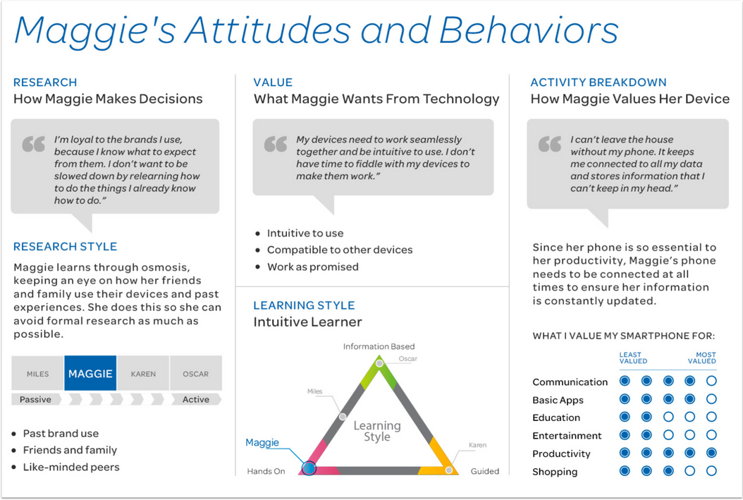 “A college student on her own, Maggie is looking for a new smart phone and internet service. Her mobile service is only for her, but she’d like to get internet fast enough for her and her roommates to stream to their laptops and tablets.”