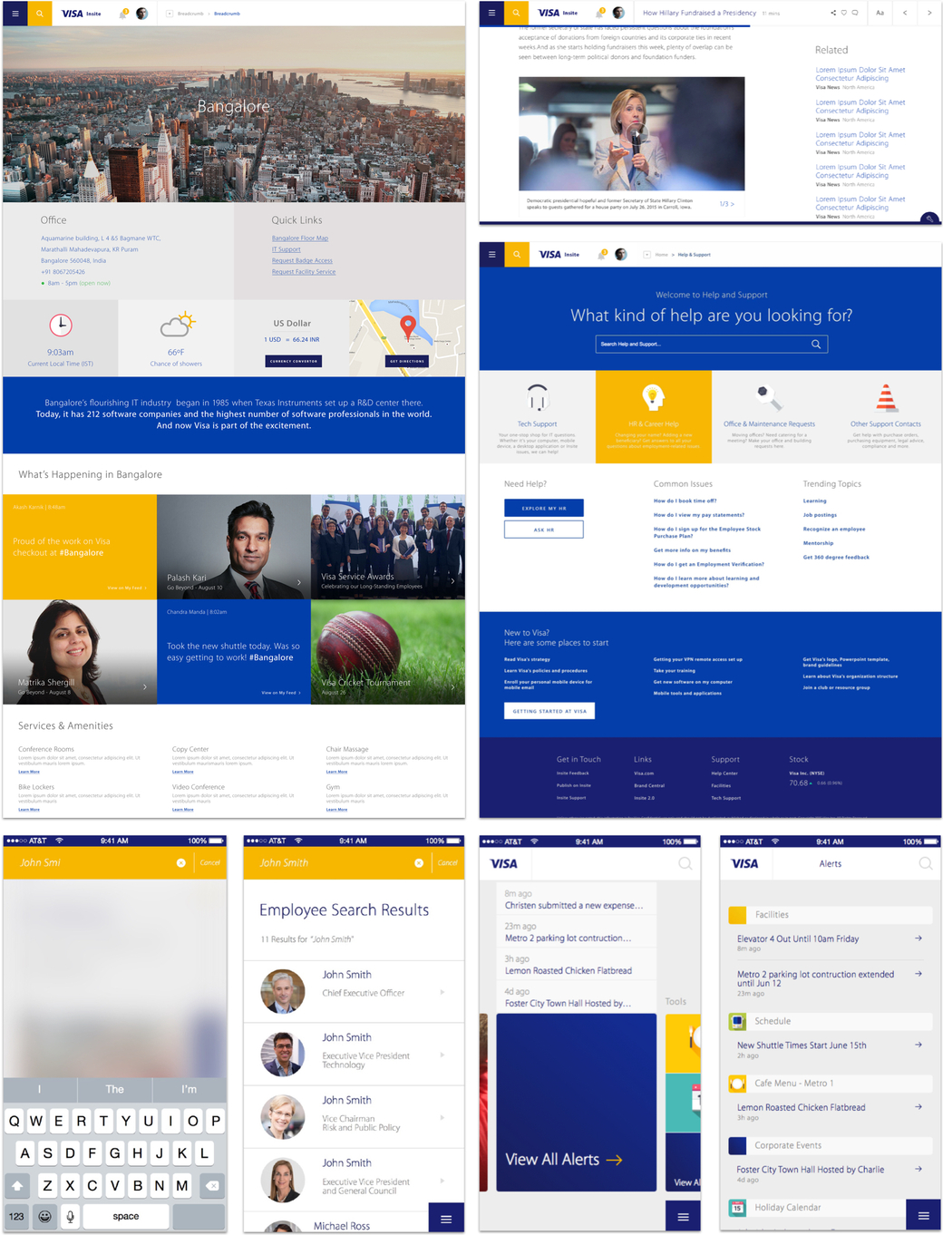 What began as the Insite app, a mobile companion to the previous employee experience, quickly grew into a full responsive redesign of the entire Visa intranet.