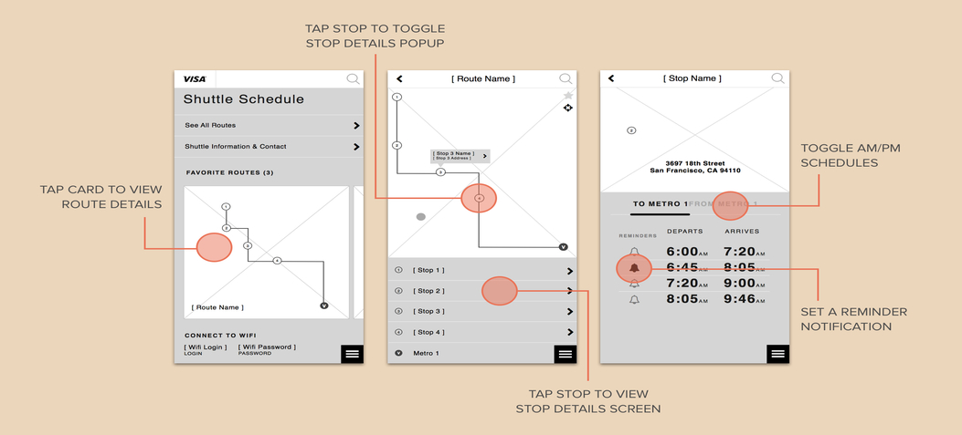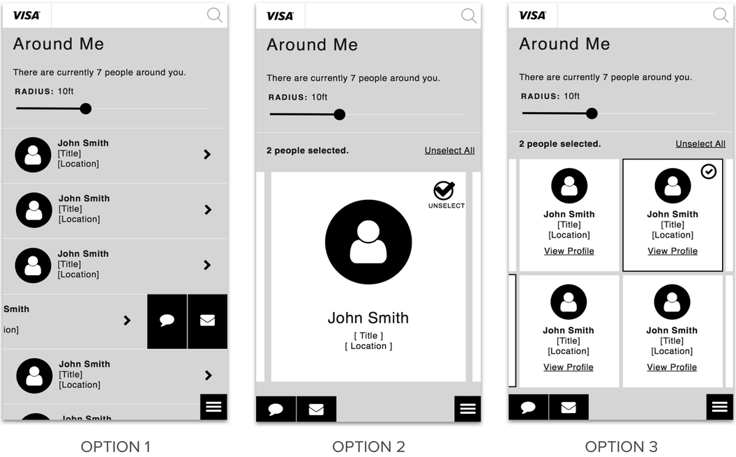 Through extensive user research, we managed to determine the key tasks Visa employees used their intranet for and translated these into mobile tools such as a shuttle schedule, cafe menu, holiday calendar, employee search, and a system to identify and interact with colleagues around you.