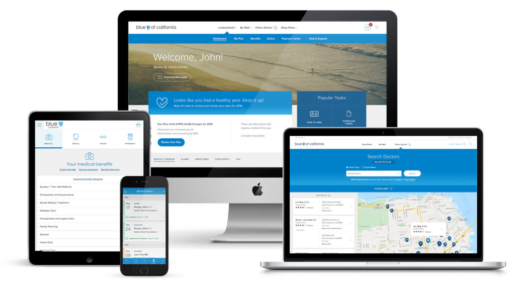 The Blue Shield of California redesign is leaps and bounds beyond their previous digital experience. A reorganized navigation and intuitive user experience helps customers easily manage their plan, track their claims, find benefits or get urgent care, and the redesigned prospect experience incorporates Blue Shield's new brand positioning, more effectively driving new customers to find a plan that best suites their needs.