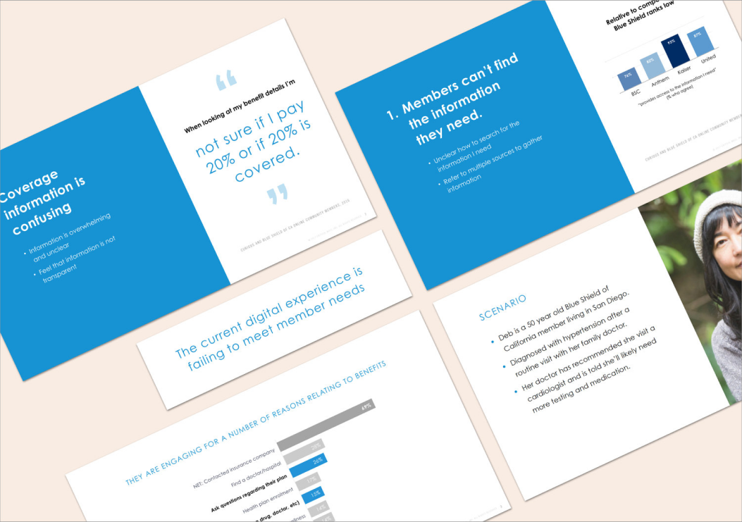 Benefits is one of the most visited sections of the site as it is where Blue Shield members can see what they're covered for. Unfortunately, because of how the backend data was structured, Benefits remained confusing and overwhelming, even with the help of the redesign. Blue Shield needed a vision of how to optimize their Benefits experience going forward.